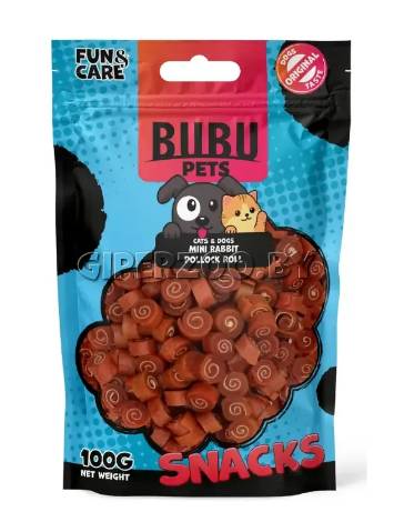 Bubu Pets Мини рулетики из кролика – натуральное лакомство для собак всех пород и кошек.