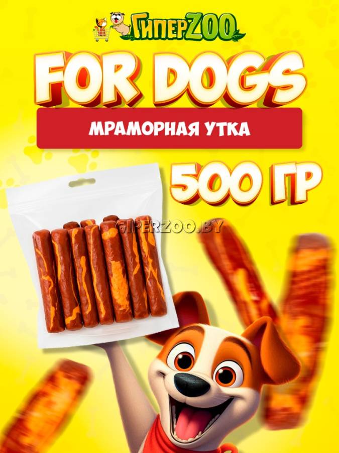 Угостите своего питомца вкусным и полезным лакомством — Мраморный дакбул от For Dogs! Эти аппетитные палочки из мяса с оригинальным "мраморным" узором станут любимым лакомством вашей собаки.