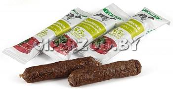 Используются для укрепления десен, очищают зубы от вредного налета и предотвращают образование зубного камня. Колбаска оригинальная "Biff" изготовлена из говяжьего мяса и мясных субпродуктов. Длина - 12 см, диаметр - 2 см, вес - 20 гр. Натуральный продукт, который не содержит красителей, консервантов и ГМО. Состав: мясо и мясные субпродукты (более 85%), кукуруза, минеральные вещества.
