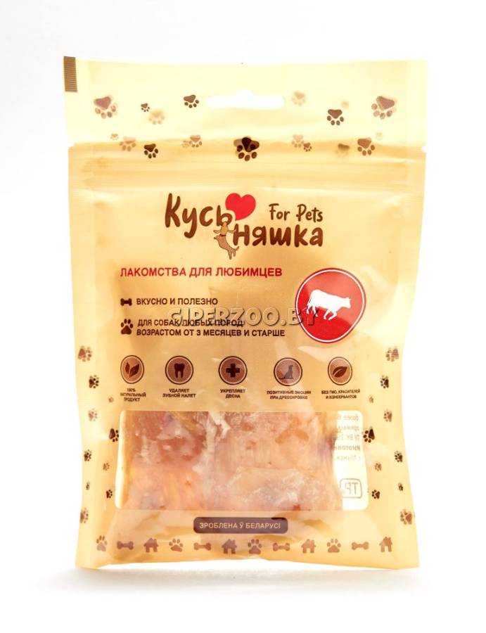 Кусьняшка Лакомство для собак становая жила говяжья очищенная, 75 гр – лакомство для собак всех пород возрастом старше 3-х лет и старше. Жила становая говяжья содержит много фосфора и кальция. Жила эффективно удаляет зубной налет у собак, является средством профилактики пародонтоза, гингивита и болезней ЖКТ собаки. Источник полноценных белков, витаминов, клетчатки, аминокислот и минеральных веществ.