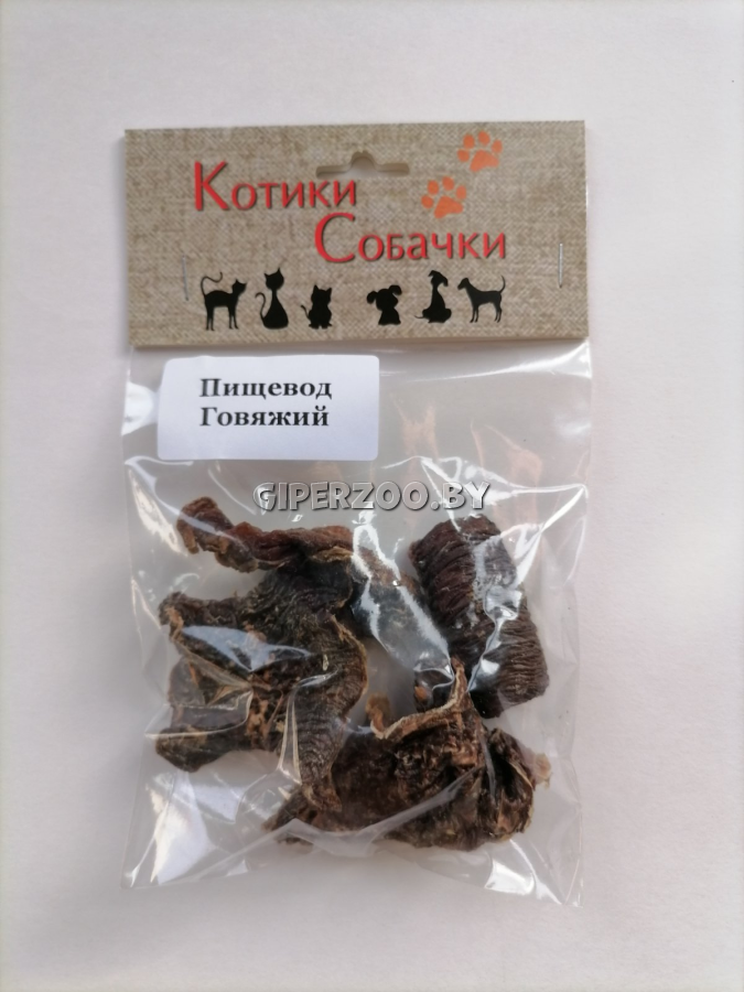 "Котики Собачки" Пищевод говяжий - это сушеное натуральное лакомство для собак. Для приготовления лакомств берутся только натуральные продукты наивысшего качества. Технология приготовления позволяет сохранить все полезные свойства продукта, до 90 % витаминов и активных веществ, без применения химических добавок и компонентов. Процесс сушки обладает стерилизационным эффектом, обеспечивая полное отсутствие вредных микроорганизмов и бактерий. Готовый продукт сохраняет естественный привлекательный вид, цвет, запах, вкус. Продукт натурален и экологичен. Состав: говядина. Вес: 40 г.