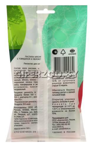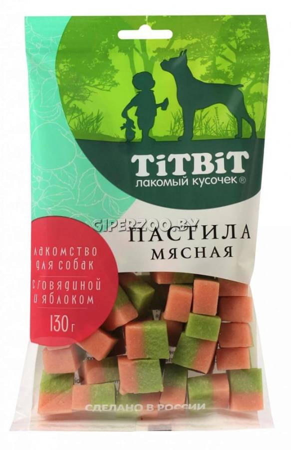 ТИТБИТ Пастила мясная (говядина, яблоко), 130 гр – это аппетитный десерт для собак всех пород. В основе угощения легкоусвояемый рис, который дополнен ценными источниками животного белка и полезными ингредиентами. Нежная структура и мясной аромат придутся по душе даже самому привередливому питомцу.