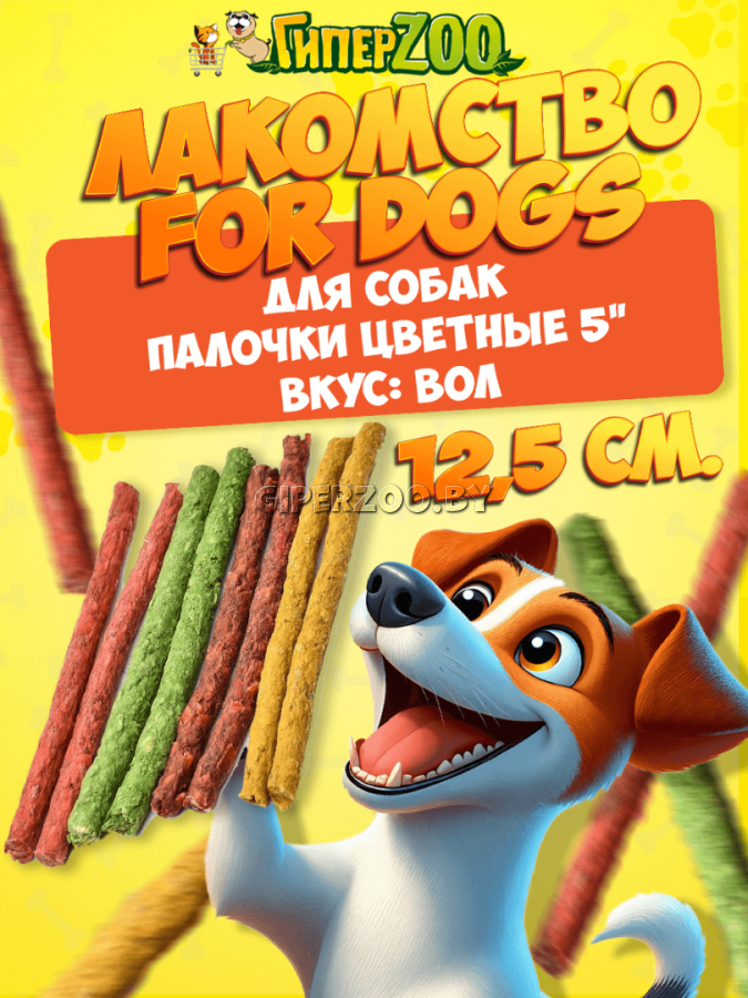 Лакомство в виде цветных палочек для собак For Dogs, 12,5 см - это натуральное лакомство для вашего питомца.
