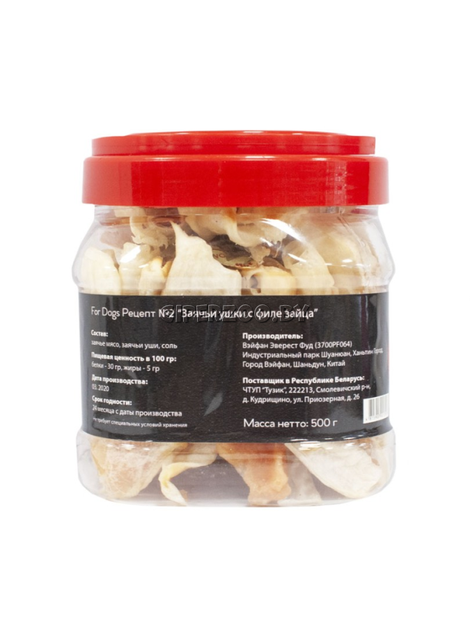 Лакомство для собак For Dogs Рецепт №2 - Заячьи ушки с филе зайца, 500 гр