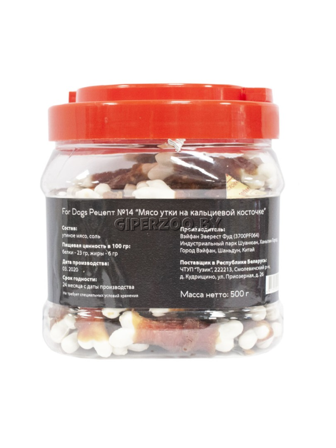 Лакомство для собак For Dogs Рецепт №14 - Мясо утки на кальциевой косточке, 500 гр