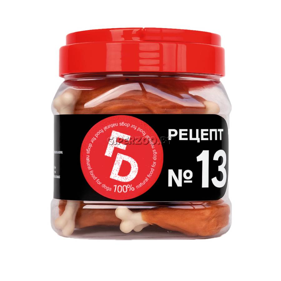For Dogs Рецепт №13 - Куриные ножки с кальцием - это натуральное лакомство для собак всех пород. Рецептуры For Dogs – это разнообразие вкусов, 100% натуральные ингредиенты, удобный размер и форма.