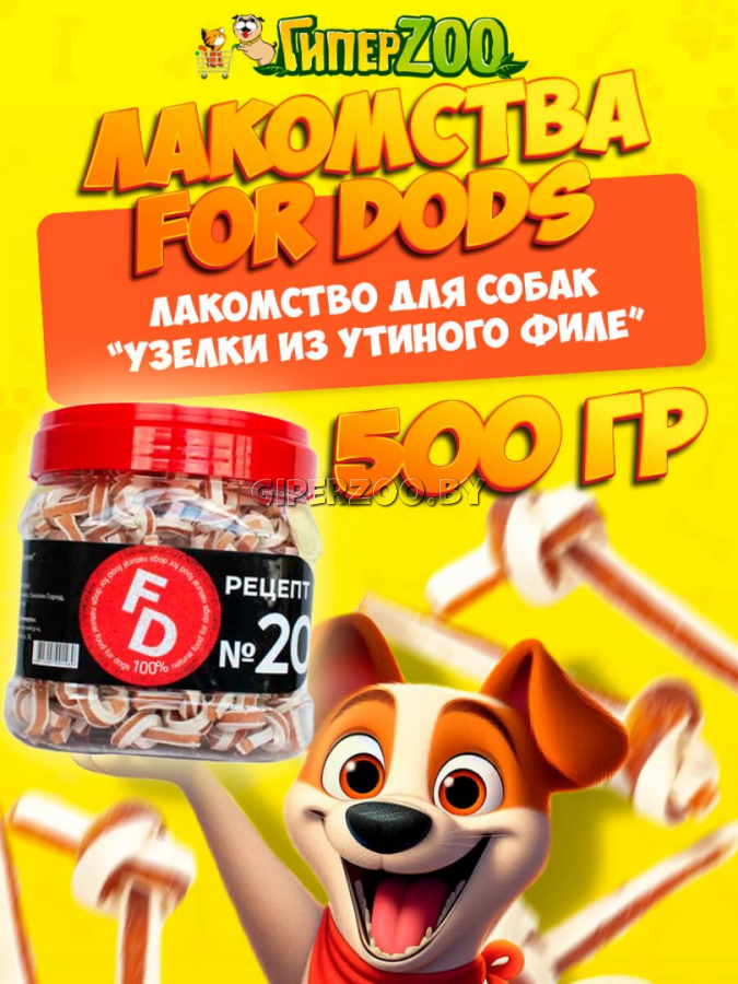 Лакомство для собак For Dogs Рецепт №20 - Узелки из утиного филе и сурими, 500 гр