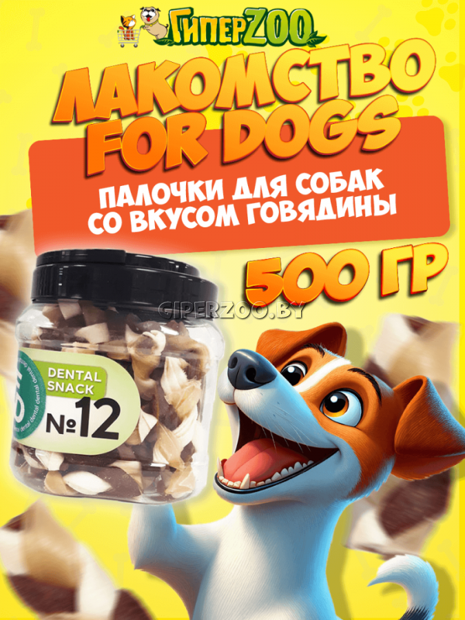 For Dogs Dental Snack Рецепт №12 - это лакомство для собак для очистки зубов от зубного камня, с добавлением глюкозамина и хондроитина.