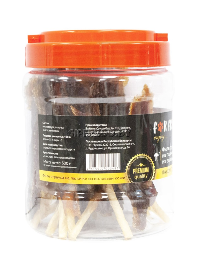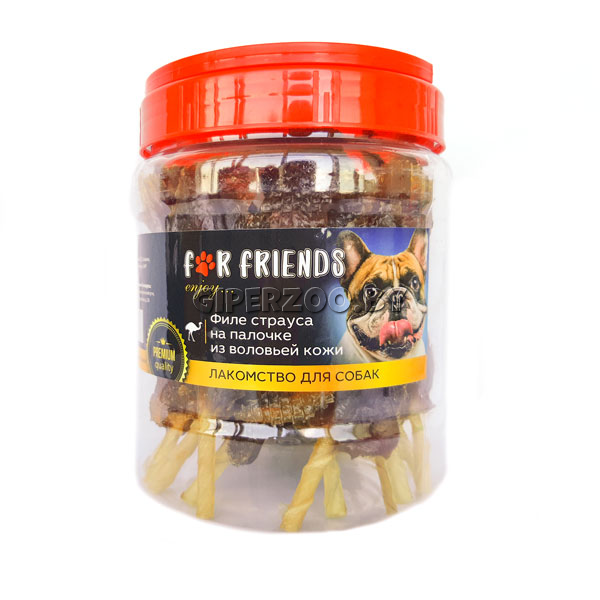 Лакомство для собак For Friends Филе страуса на палочке из воловьей кожи - это натуральное лакомство, которое подойдет для любой породы собак старше 1 года. Содержит питательные вещестра и витамины. Разработан с учетом полноценного рациона собак.