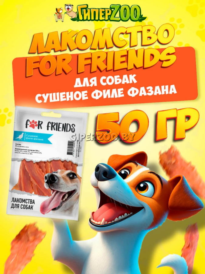 Лакомство для собак For Friends Сушеное филе фазана, 50 гр