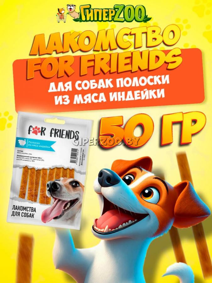 Лакомство для собак For Friends Полоски из мяса индейки, 50 гр