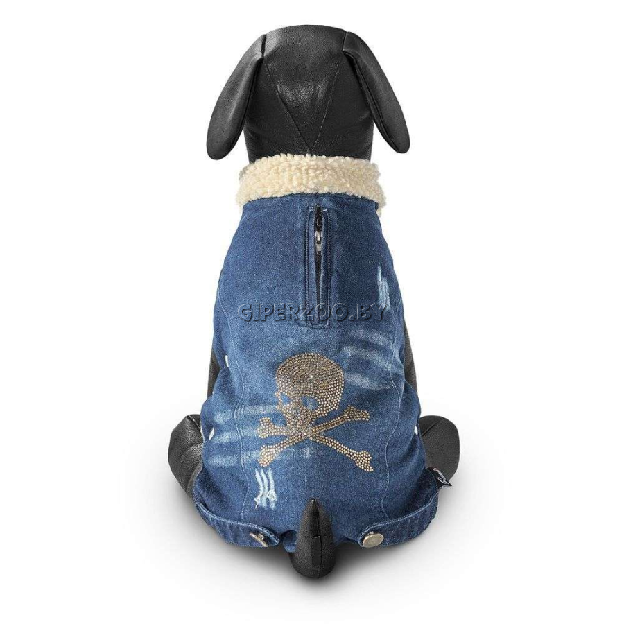 Комбинезон для собак джинсовый утепленный со стразами, S, 28см