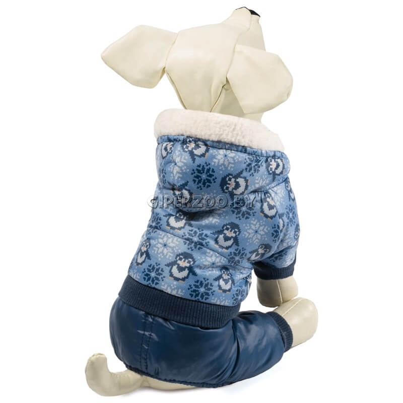 Triol Комбинезон зимний "Пингвины" - это практичный, стильный и по-настоящему теплый аксессуар для собак. Такая одежда защитит шерсть животного от дождя и грязи, а непродуваемая ткань - от сильного ветра и холода. Комбинезон садится "по фигуре" питомца и не стесняет его движений во время прогулки. Изделие с модным принтом и капюшоном надежно фиксируется при помощи трех заклепок на животе, а на штанинах предусмотрены удобные резинки, препятствующие попаданию грязи или налипанию снега снизу. Подкладка: флис. Материал: полиэстер. Цвет: синий.