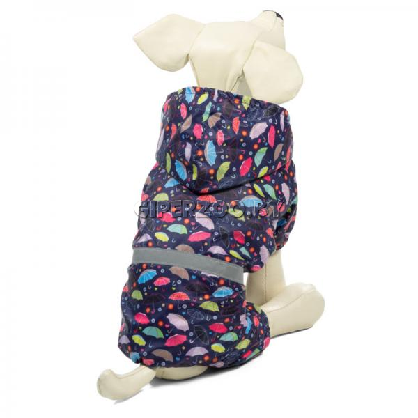 Костюм-дождевик "Зонтики" - это удобный и функциональный аксессуар для собак, который просто незаменим в дождливую погоду. Изделие защитит шерсть животного от дождя и грязи, а непродуваемая ткань - от сильного ветра. Костюм имеет стильный дизайн, а универсальный фасон не стесняет движений питомца во время прогулки. Особенностью дождевика является светоотражающая лента, идущая по талии изделия, - для повышения безопасности животного на дороге. Дождевик также имеет капюшон и фиксируется при помощи трех заклепок на животе, а на штанинах предусмотрены удобные резинки, препятствующие попаданию грязи и влаги снизу. Длина спины: 350мм; обхват груди: 460мм; обхват шеи: 330мм. Цвет: фиолетовый.