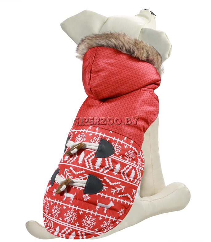 Утепленная попона "Зимняя сказка" с капюшоном для комфортных прогулок даже в самую ненастную погоду. Попона украшена двумя необычными застежками-клевантами на спинке. Изделие застегивается при помощи трех заклепок на животе, легко надевается и снимается, предусмотрен вырез для крепления поводка. Такая попона станет настоящим украшением вашей совместной прогулки с питомцем и подарит предновогоднее настроение! Флисовая подкладка с утеплителем. Длина спины: 250мм; обхват груди: 380мм; обхват шеи: 280мм. Цвет: красный.
