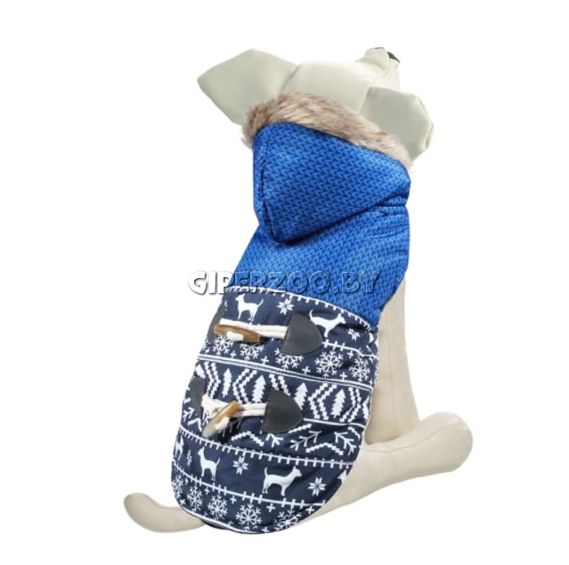 Утепленная попона "Зимняя сказка" с капюшоном для комфортных прогулок даже в самую ненастную погоду. Попона украшена двумя необычными застежками-клевантами на спинке. Изделие застегивается при помощи трех заклепок на животе, легко надевается и снимается, предусмотрен вырез для крепления поводка. Такая попона станет настоящим украшением вашей совместной прогулки с питомцем и подарит предновогоднее настроение! Флисовая подкладка с утеплителем. Длина спины: 350мм; обхват груди: 460мм; обхват шеи: 350мм. Цвет: синий.