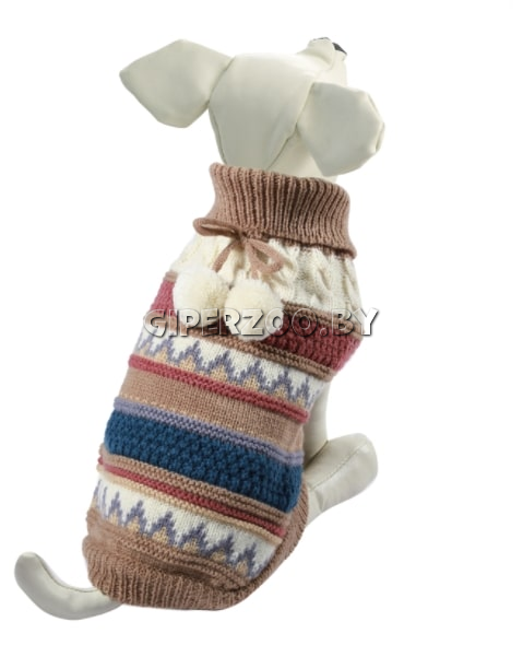 Теплый свитер с украшением в виде помпонов - это удобный и функциональный аксессуар для собак, который просто незаменим в холодную погоду. Изделие защитит вашего питомца от ветра и согреет в непогоду. Свитер имеет стильный дизайн, а универсальный и продуманный до мелочей фасон не стесняет движений питомца во время прогулки. Такой свитер с оригинальным узором станет украшением гардероба вашего питомца. Материал: акрил. Цвет: светло-коричневый. Размер: 40см (XL).