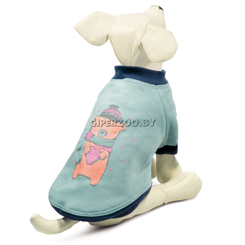 Толстовка "Медвежонок" - это стильный и функциональный аксессуар для собак на каждый день. Изделие имеет оригинальный дизайн и модный принт на спине. Толстовка надевается через голову. На рукавах предусмотрены удобные резинки, фиксирующие изделие на лапах животного, а универсальный фасон не стесняет движений питомца во время прогулки. Длина по спинке: 300 мм. Цвет: мятный.