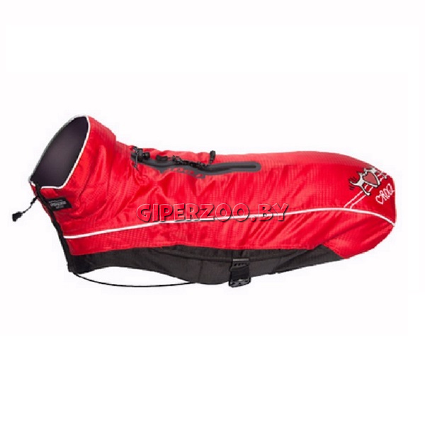 Ярко-красная попона для комфортных прогулок в морозные дни. Регулируется по размеру тела вашего питомца. Благодаря эластичным вставкам не стесняет движений собаки.