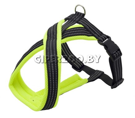 Шлейка нейлон Х-образная с мягкой подкладкой для собак. Обхвату шеи 40 см, обхват груди от 44 до 55 см (ширина 20 мм). Амортизирующая подкладка на шлейке бережно заботится о шерсти и коже животного - не спутывая её и не повреждая. Особую надежность конструкции шлейки придает её Х-образная форма, позволяющая грамотно распределить нагрузку на спину собаки. Светоотражающие полосы на шлейках выделяют собаку визуально как на близком, так и на дальнем расстоянии, что повышает уровень безопасности для животного. Удобная и быстрая регулировка объема груди шлейки с помощью специальных креплений, а также возможность быстрого снятия шлейки при помощи застёжки-фастекса создают дополнительное преимущество данных моделей.