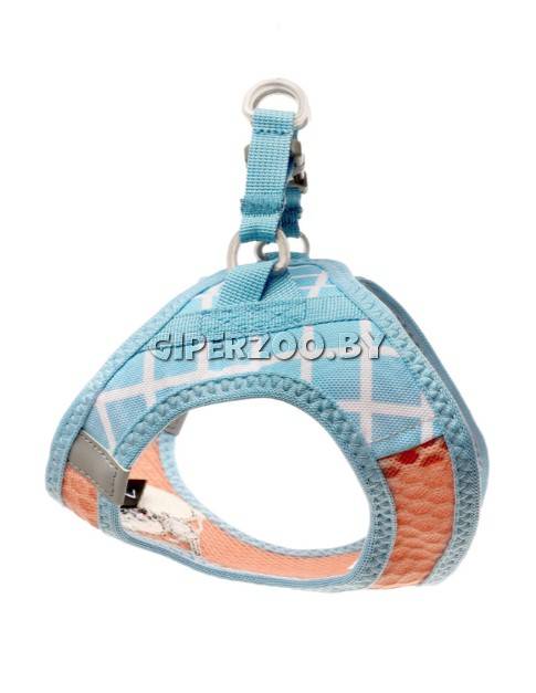 Размер шлейки: М (обхват груди 410-440мм; обхват шеи 300-360мм; длина спинки 65мм). Цвет: розово-голубой.