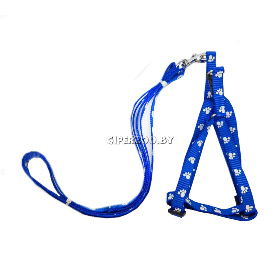 Комплект шлейка и поводок For friends "Лапки" синий XS