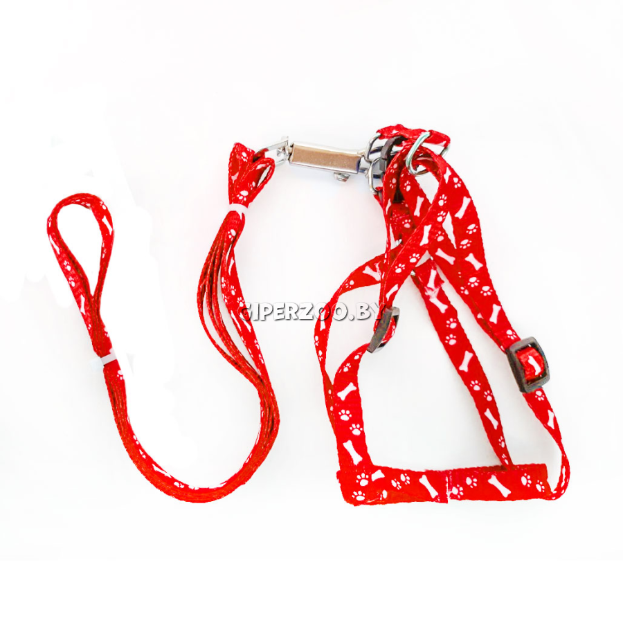 Комплект шлейка и поводок For friends "Косточки" красный XS