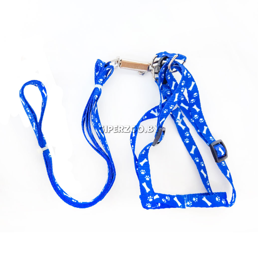 Комплект шлейка и поводок For friends "Косточки" синий XS