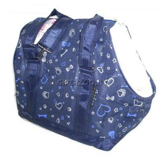 Сумка открывается сверху (замок-молния). Имеется отверстие для головы питомца и ремень для пристёгивания к ошейнику или шлейке.