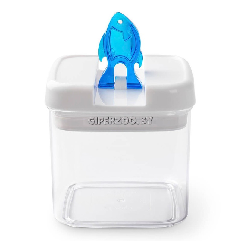 Прозрачное окошко: Контейнер оснащен прозрачным окошком, что позволяет легко контролировать уровень корма внутри, не открывая крышку.