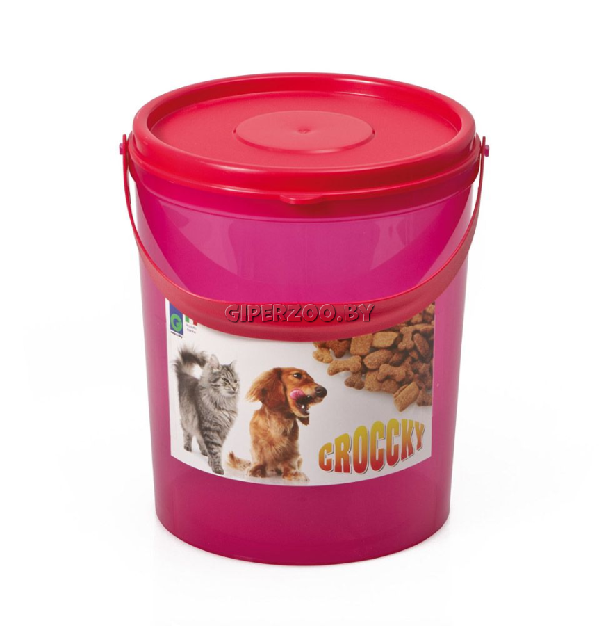 Контейнер пластиковый 5,5л для сухого корма, ведёрко с крышкой-МИСКОЙ Croccky - croquettes bucket