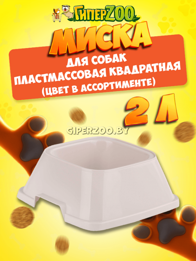 Миска квадратная для собак пластмассовая, 2,0 л