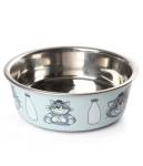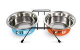 - Миски из нержавеющей стали- самый оптимальный и практичный вариант. Можно выбрать модель, в которой емкость для пищи будет выполнена из металла, а подставка из другого материала.
