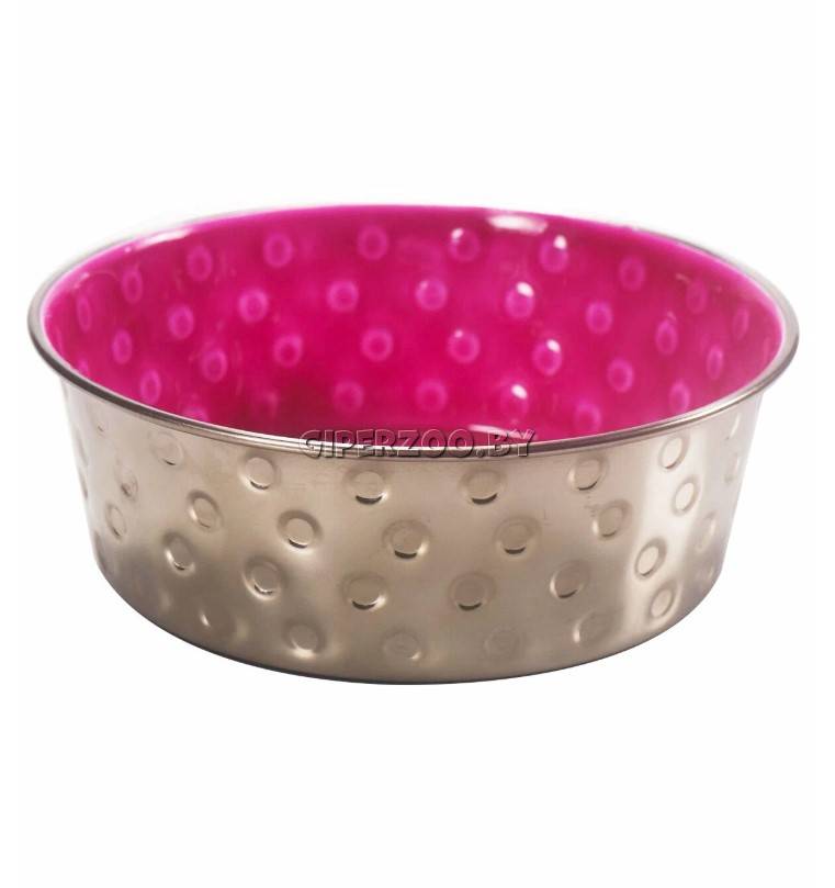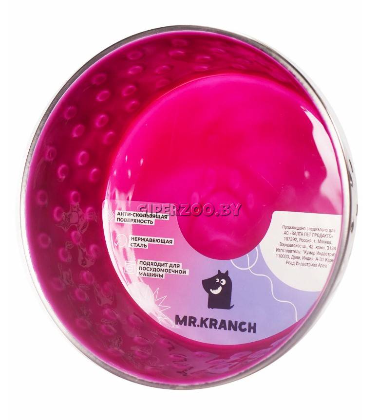 Mr.Kranch Миска из нержавеющей стали с керамическим покрытием Cyclo, пурпурная — яркая и стильная миска для кормления питомцев из нержавеющей стали. Удобная эргономичная форма миски наилучшим образом подходит для всех видов корма и воды. Миска устойчива и не переворачивается за счет силиконовой накладки на дне. Прочный и безопасный материал – нержавеющая сталь – надолго сохранят свежесть воды и корма. Яркое керамическое покрытие дополнительно защищает и предотвращает поверхность миски от появления царапин.