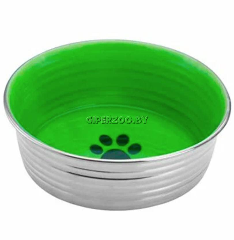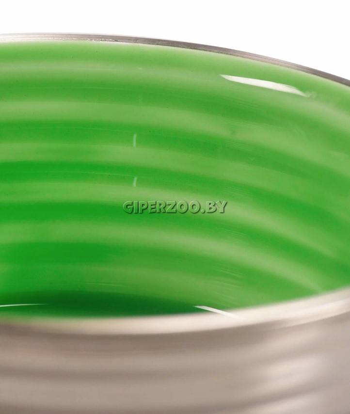 Mr.Kranch Миска из нержавеющей стали с керамическим покрытием Cyclo, зеленая – яркая и стильная миска для кормления питомцев из нержавеющей стали. Удобная эргономичная форма миски наилучшим образом подходит для всех видов корма и воды. Миска устойчива и не переворачивается за счет силиконовой накладки на дне. Прочный и безопасный материал – нержавеющая сталь – надолго сохранят свежесть воды и корма. Яркое керамическое покрытие дополнительно защищает и предотвращает поверхность миски от появления царапин.