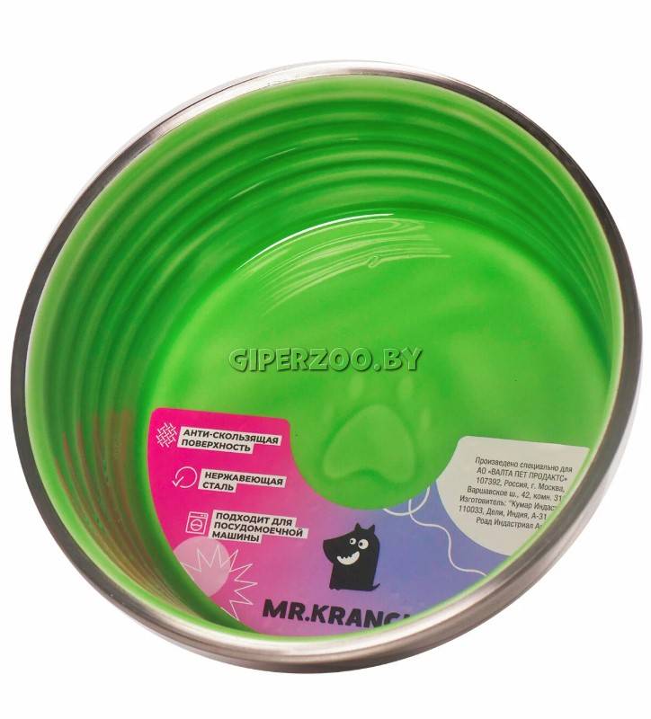 Mr.Kranch Миска из нержавеющей стали с керамическим покрытием Cyclo, зеленая – яркая и стильная миска для кормления питомцев из нержавеющей стали. Удобная эргономичная форма миски наилучшим образом подходит для всех видов корма и воды. Миска устойчива и не переворачивается за счет силиконовой накладки на дне. Прочный и безопасный материал – нержавеющая сталь – надолго сохранят свежесть воды и корма. Яркое керамическое покрытие дополнительно защищает и предотвращает поверхность миски от появления царапин.