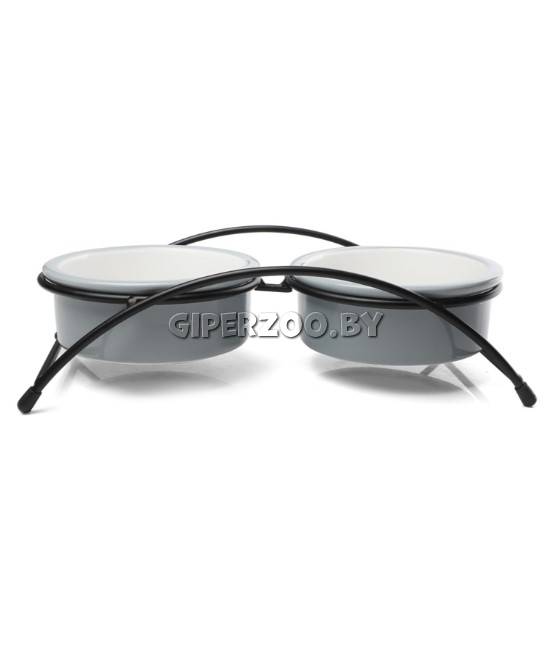Цвет изделия: серый с белым. Размер изделия: d дна - 112 мм; d в верхней части - 125 мм; высота - 45 мм. Размер подставки - 280*135*65 мм. Объем - 2*0,25 л.