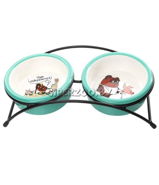 Triol Миска на подставке Пора подкрепиться! — этот функциональный комплект из двух универсальных круглых мисок на подставке выполнен из керамики высокого качества и отлично подходит для кошек и собак мелких пород.