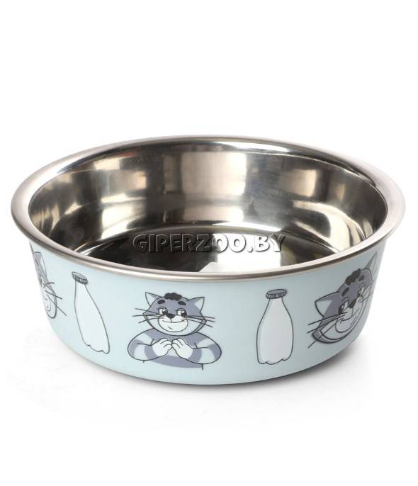Triol Миска металлическая на резинке Молочное лакомство — стильная круглая миска из нержавеющей стали для кошек и собак небольших пород.