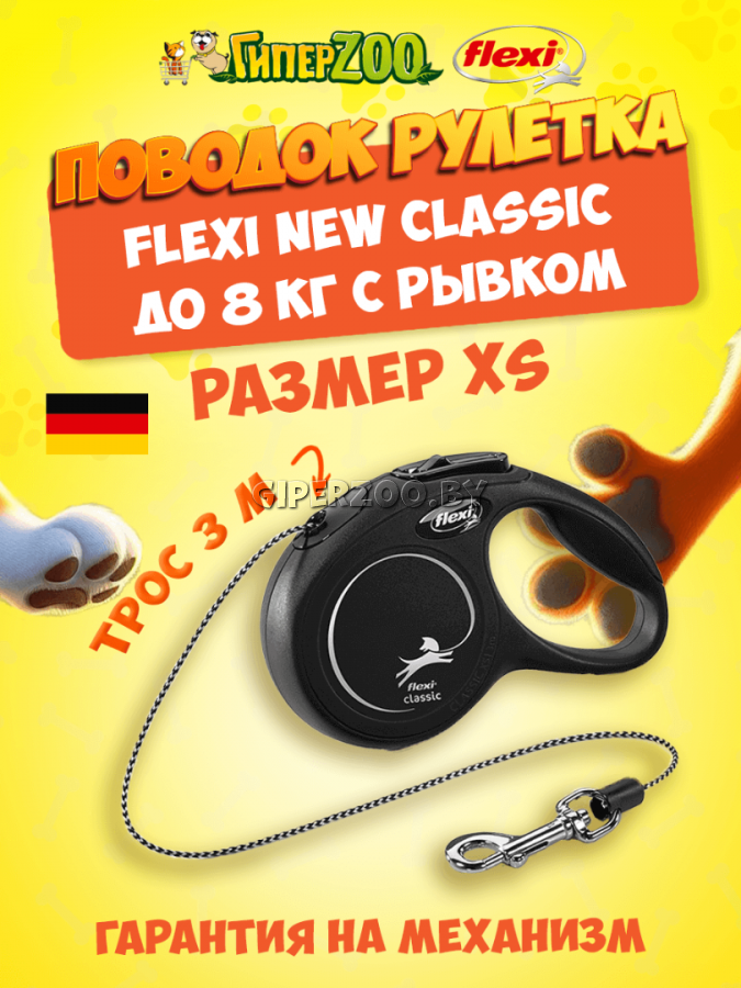 Рулетка Flexi New Classic черная XS, трос 3 м — это компактный и легкий поводок-рулетка, предназначенный для выгула мелких собак, кошек и других небольших животных весом до 8 кг. Благодаря своим небольшим размерам и весу (около 100 г), эта рулетка идеально подходит для тех, кто ищет удобный и нетяжелый аксессуар для своего питомца. Рулетка произведена в Германии, что является гарантией высокого качества и долговечности.