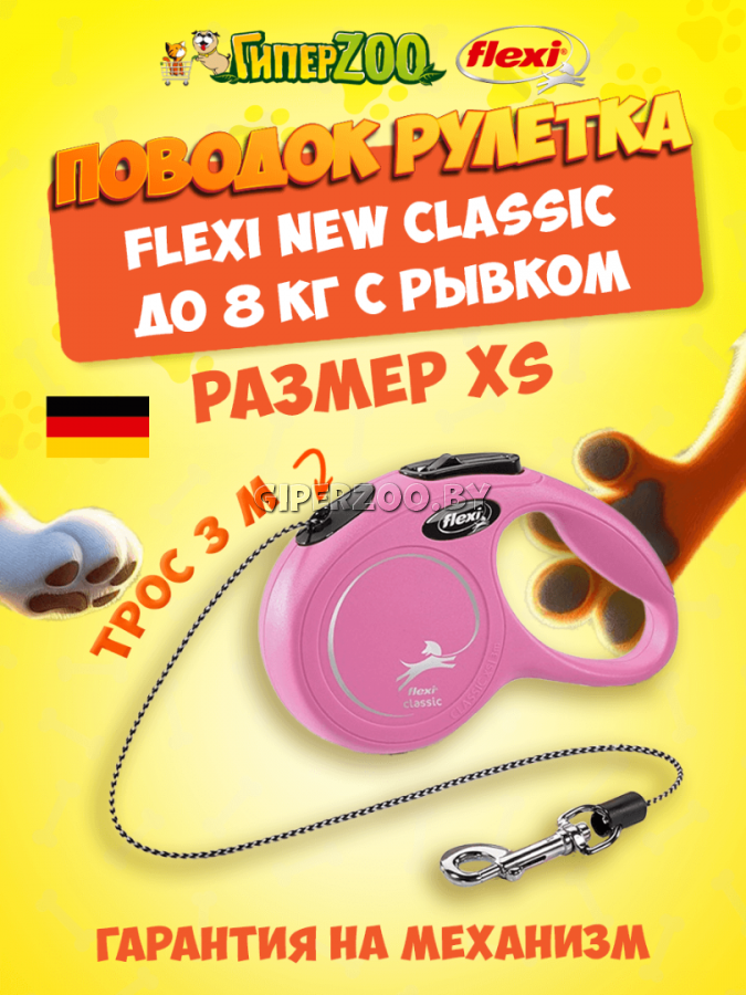 Рулетка Flexi New Classic розовая XS, трос 3 м — это компактный и легкий поводок-рулетка, предназначенный для выгула мелких собак, кошек и других небольших животных весом до 8 кг. Благодаря своим небольшим размерам и весу (около 100 г), эта рулетка идеально подходит для тех, кто ищет удобный и нетяжелый аксессуар для своего питомца. Рулетка произведена в Германии, что является гарантией высокого качества и долговечности.