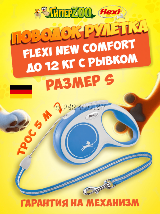 Рулетка Flexi New Comfort S, трос 5 метров (синяя) - тросовый поводок-рулетка предназначен для выгула собак весом до 12 кг.