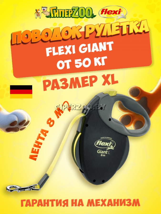 Рулетка Flexi Giant черная XL, лента 8 м — это особо прочный и надёжный поводок-рулетка, предназначенный для выгула очень крупных и сильных собак весом до 100 кг. Эта модель сочетает в себе увеличенную длину ленты с максимальной прочностью и комфортом использования, что делает её идеальным выбором для владельцев больших и активных питомцев. Рулетка производится в Германии, что является гарантией высочайшего качества.