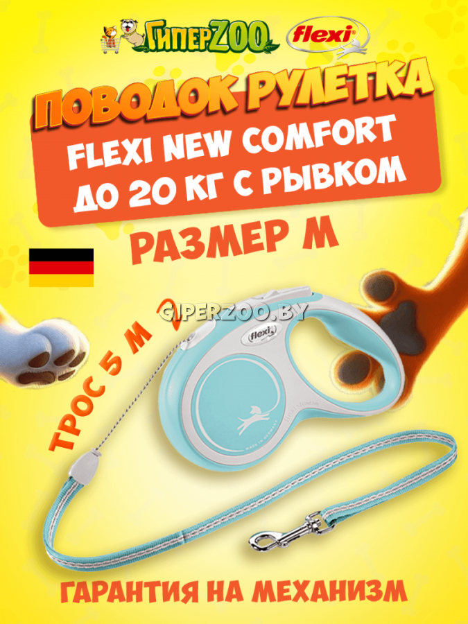 Рулетка Flexi New Comfort голубая M, трос 5 м — это удобный и надёжный поводок-рулетка, предназначенный для выгула собак весом до 20 кг. Производится в Германии, что гарантирует высокое качество материалов и сборки.