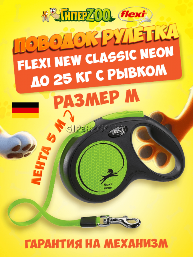 Neon М лента 5 м прекрасно заметна в темное время суток благодаря светоотражающим наклейкам и неоновой ленте. Отражает свет фар на расстоянии до 150 м. Предназначена для собак весом до 25 кг. Комфортная тормозная система. Хромированный карабин. К данной модели можно приобрести Multi-Box.
