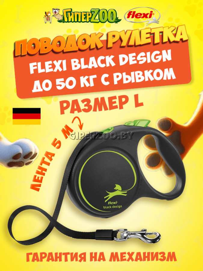 Рулетка Flexi Black Design с зелеными элементами L, лента 5 м — это прочный и стильный поводок-рулетка, предназначенный для выгула крупных собак весом до 50 кг. Она сочетает в себе надёжность, комфорт использования и современный дизайн с яркими цветовыми акцентами. Как и все рулетки Flexi, она произведена в Германии.