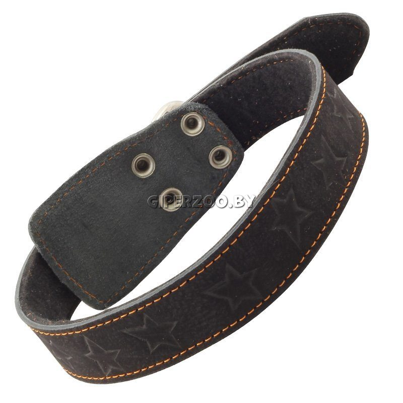 Кожаный ошейник - незаменимый аксессуар для владельцев собак крупных пород. Изделие выполнено из мягкой, но прочной кожи высокого качества с элементами из синтепона и использованием крепкой металлической фурнитуры. Предусмотренные отверстия позволяют удобно подгонять длину под индивидуальные параметры животного, а функциональное металлическое кольцо отлично подойдет для крепления карабина поводка, адресника или других аксессуаров.