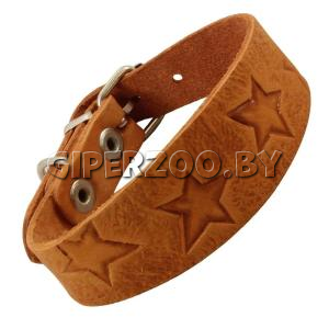 Ошейник-мини кожаный одинарный "Узор" c тиснением, 3,3*30 см