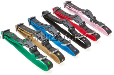 Очень яркий, стильный и красивый, но что не менее важно - практичный ошейник. Ошейники этого типа являются настоящим хитом любого зоомагазина. Длина ошейника регулируется от диаметра 24 см до 42 см, т.е. практически в два раза. Это делает его самым удобным ошейником для щенков.