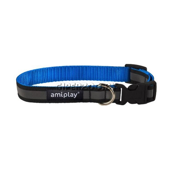Сварное полукольцо для крепления карабина. Предназначен для повседневного использования. Светоотражающая лента обезопасит животного при вечерних прогулках, видна при освещении фар автомобиля. Материал нейлон. Цвет: голубой. Гарантия 3 года. Произведено в Польше.
